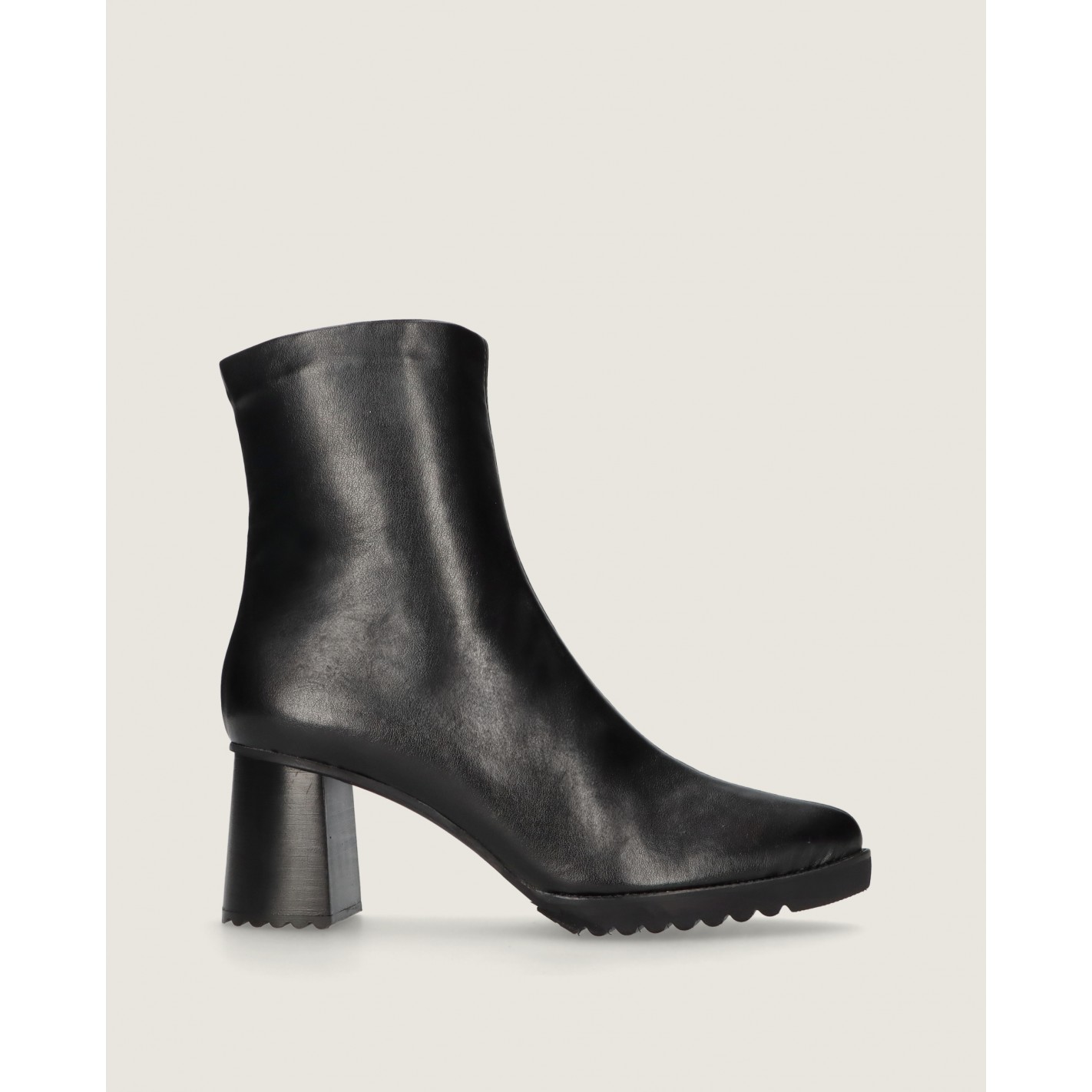 Stiefelette Julie mit 7 cm Absatz aus elastischem Textil in Lederoptik in Schwarz, Gummisohle, Innensohle und Futter aus Leder.