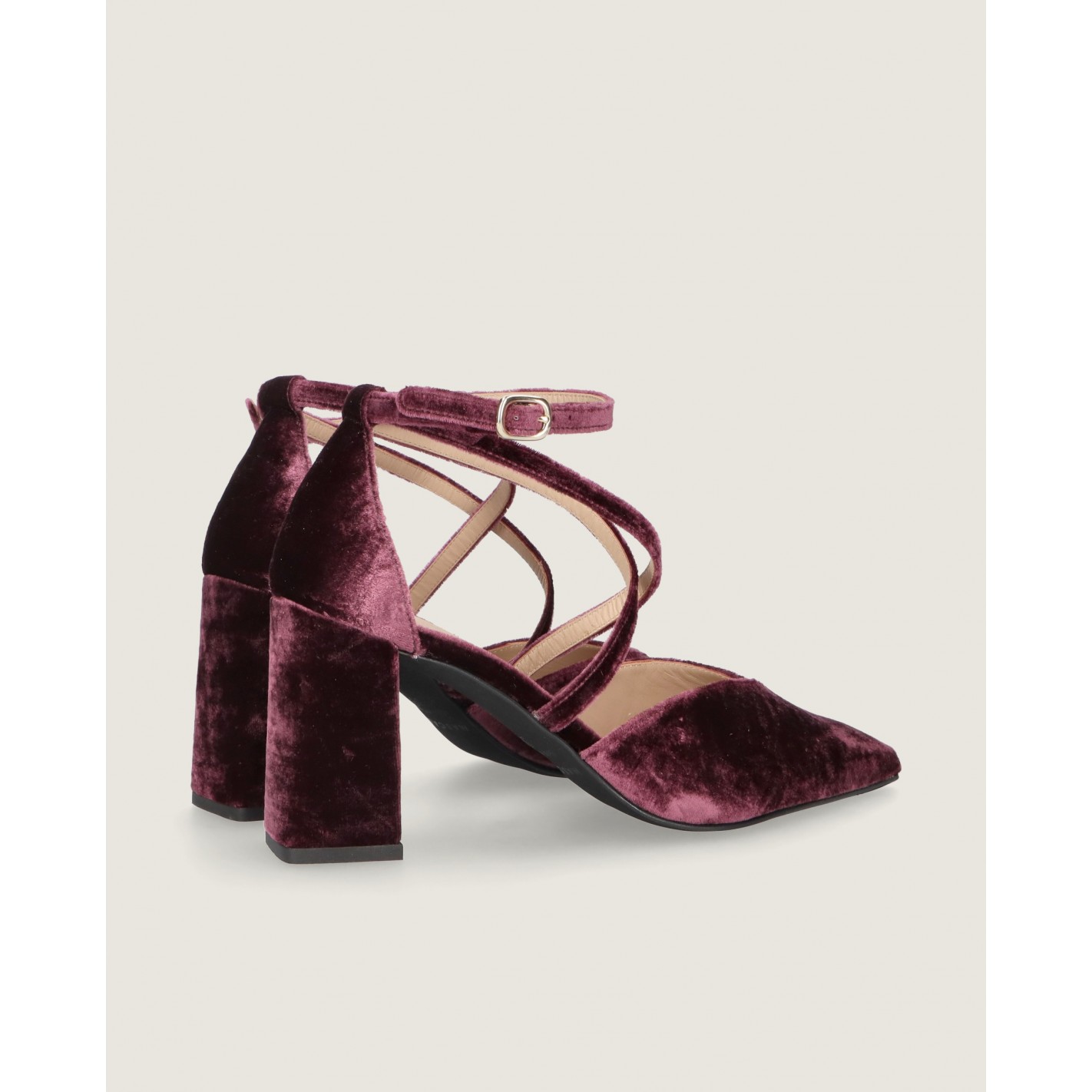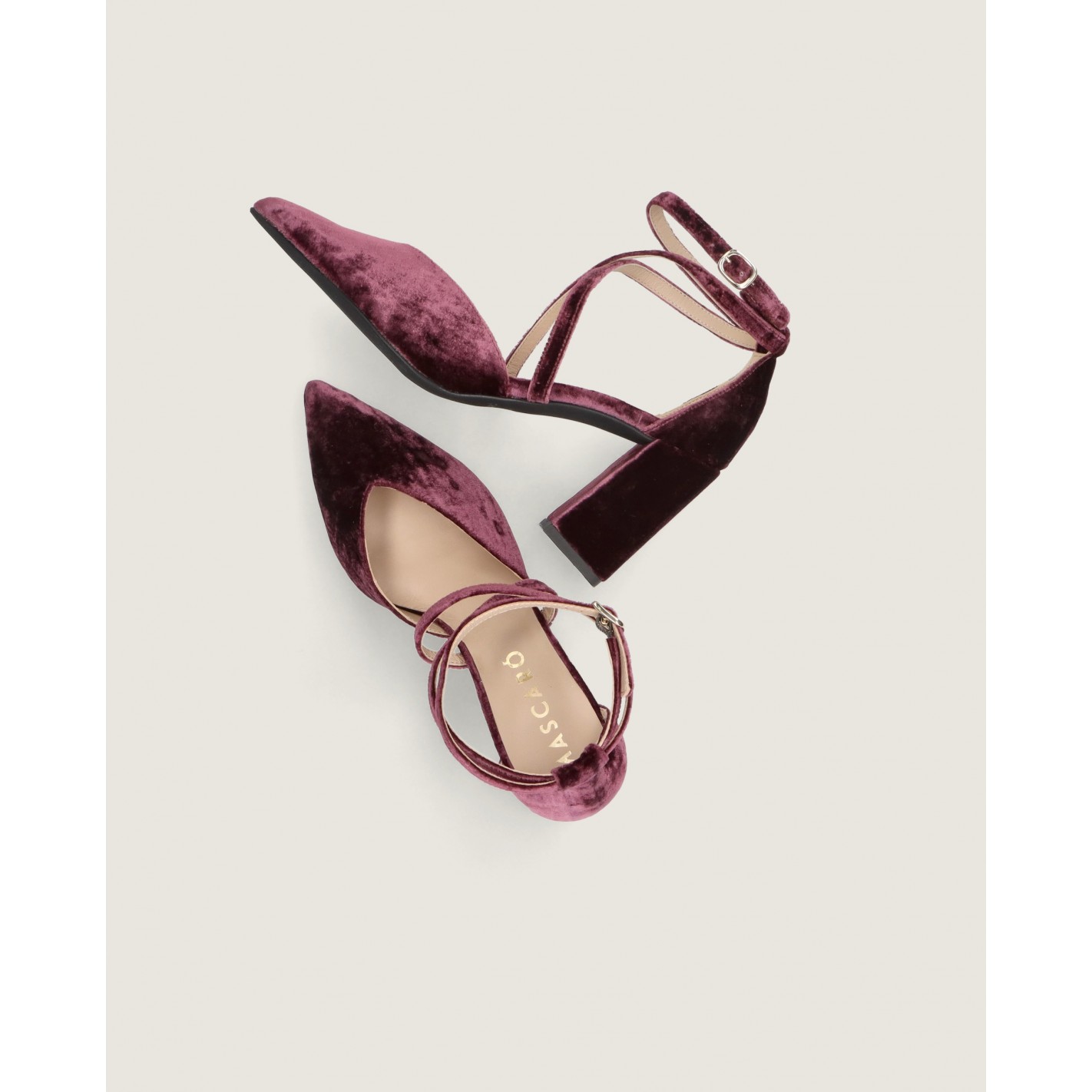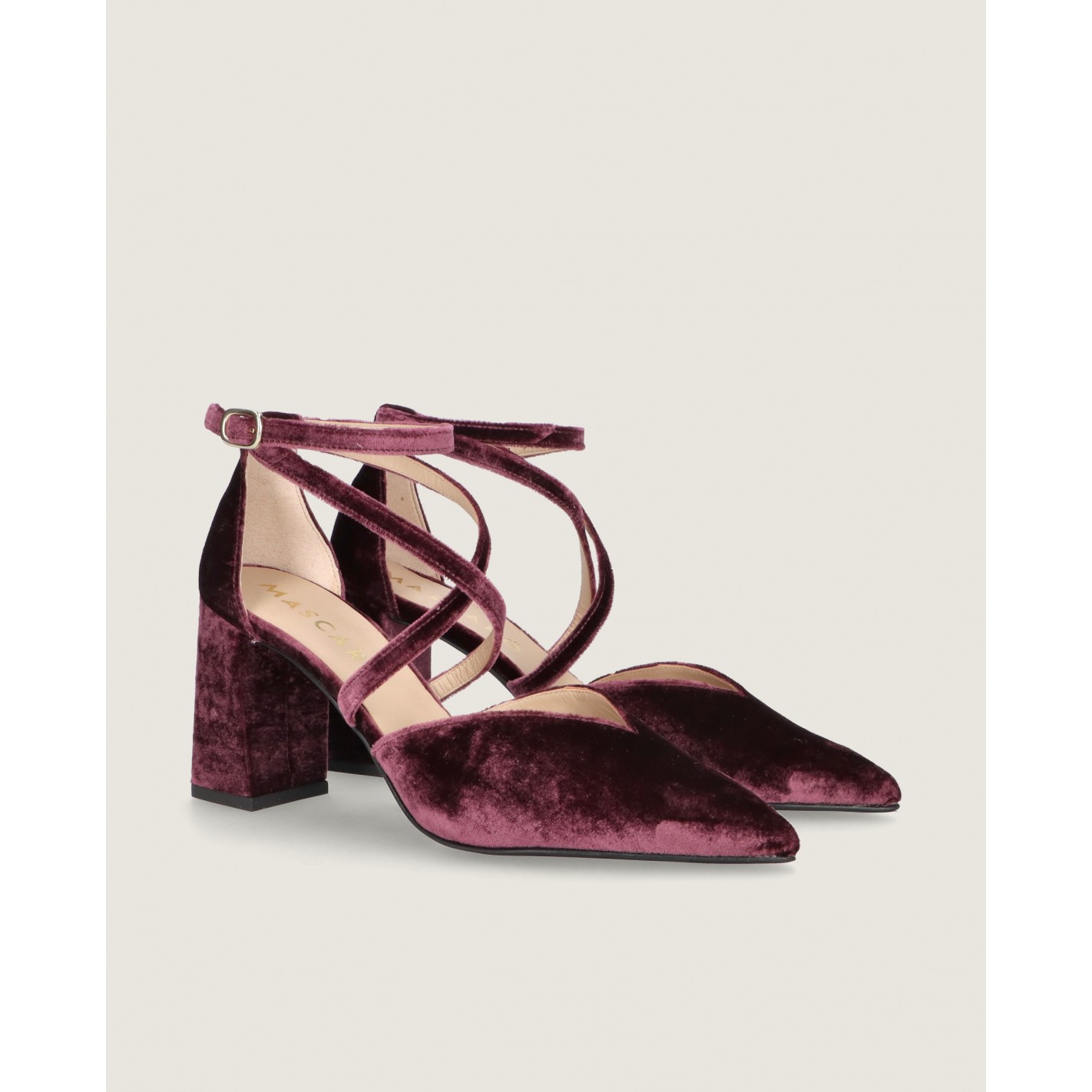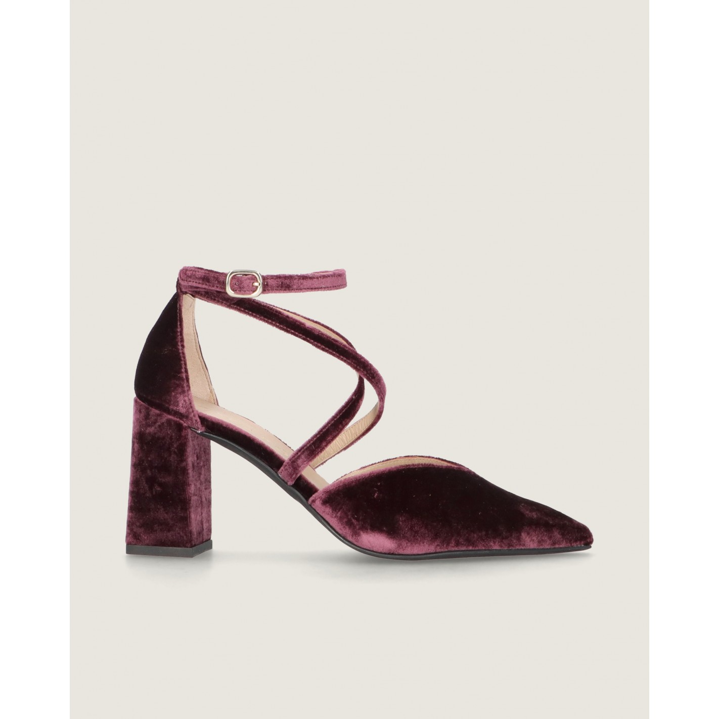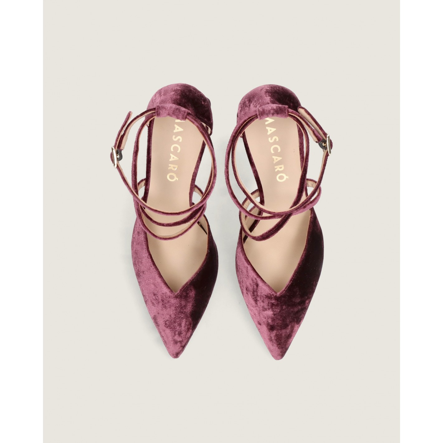Pumps Renata mit spitzer Kappe und 8 cm Absatz aus mauvefarbenem Samt mit Gummisohle, Lederinnensohle und -futter.