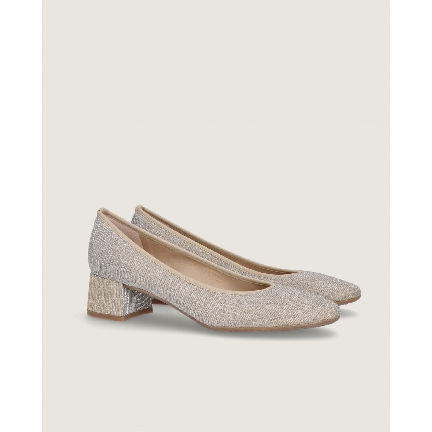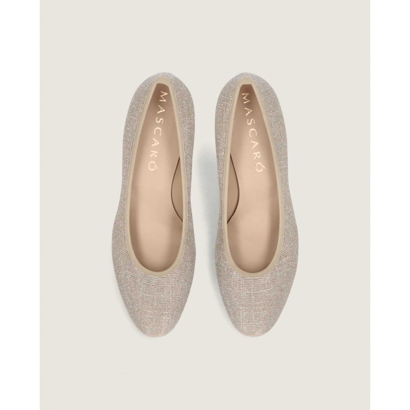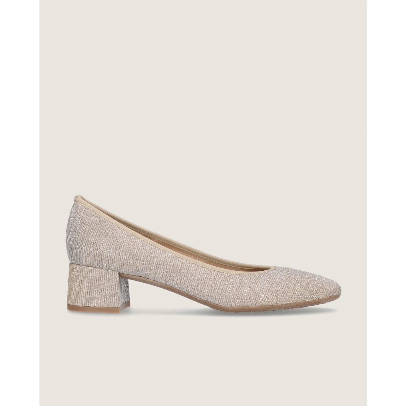 Small handbag in champagne gold glitzy textile with golden chain detail. 13cm x 29cm x 4cm (height x length x width)