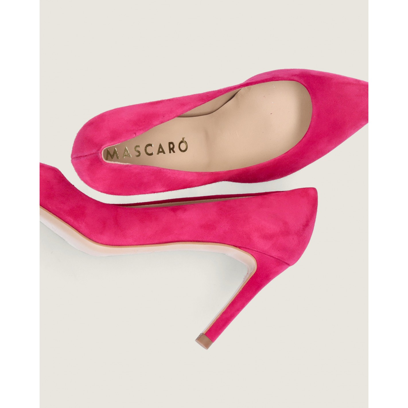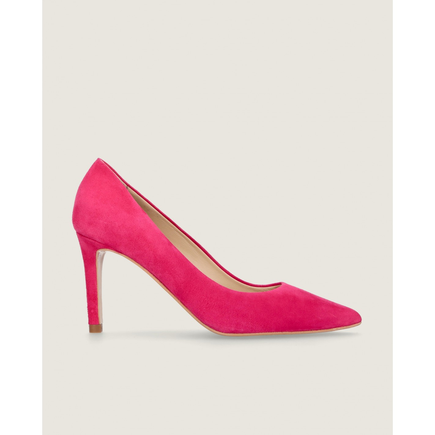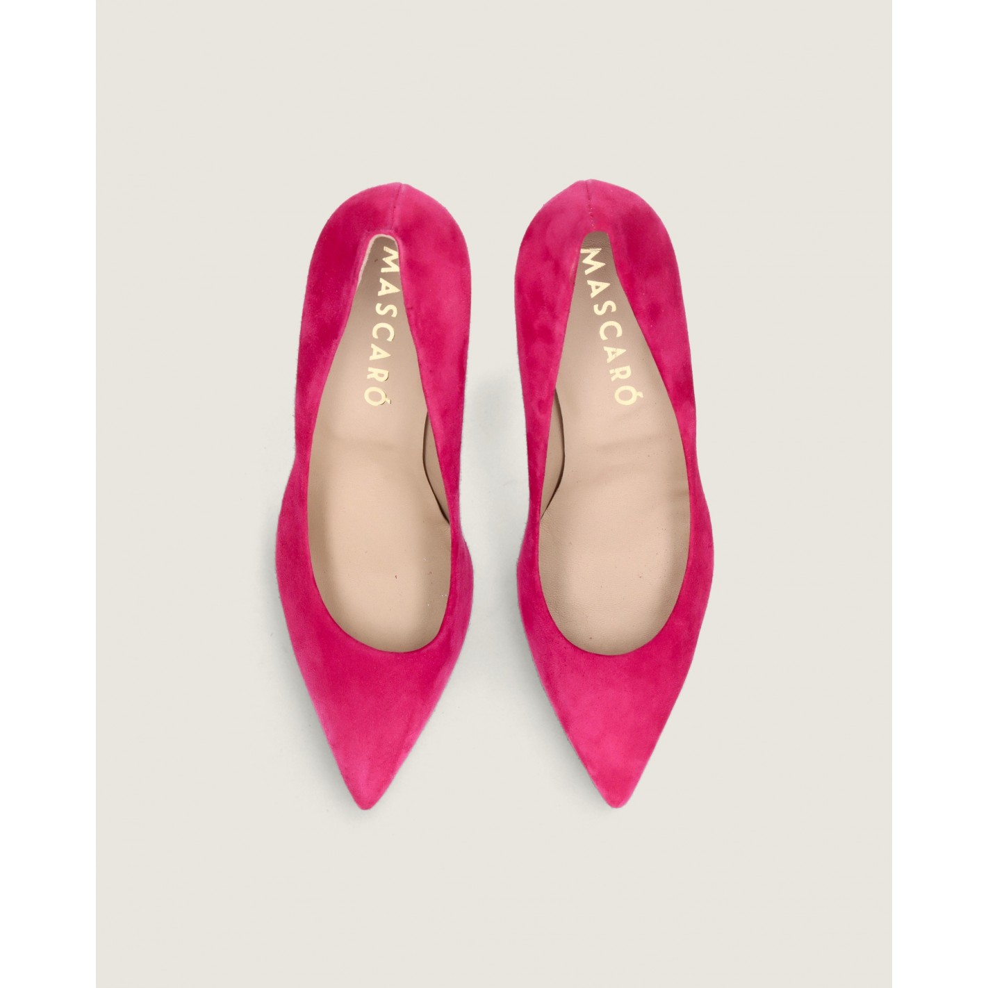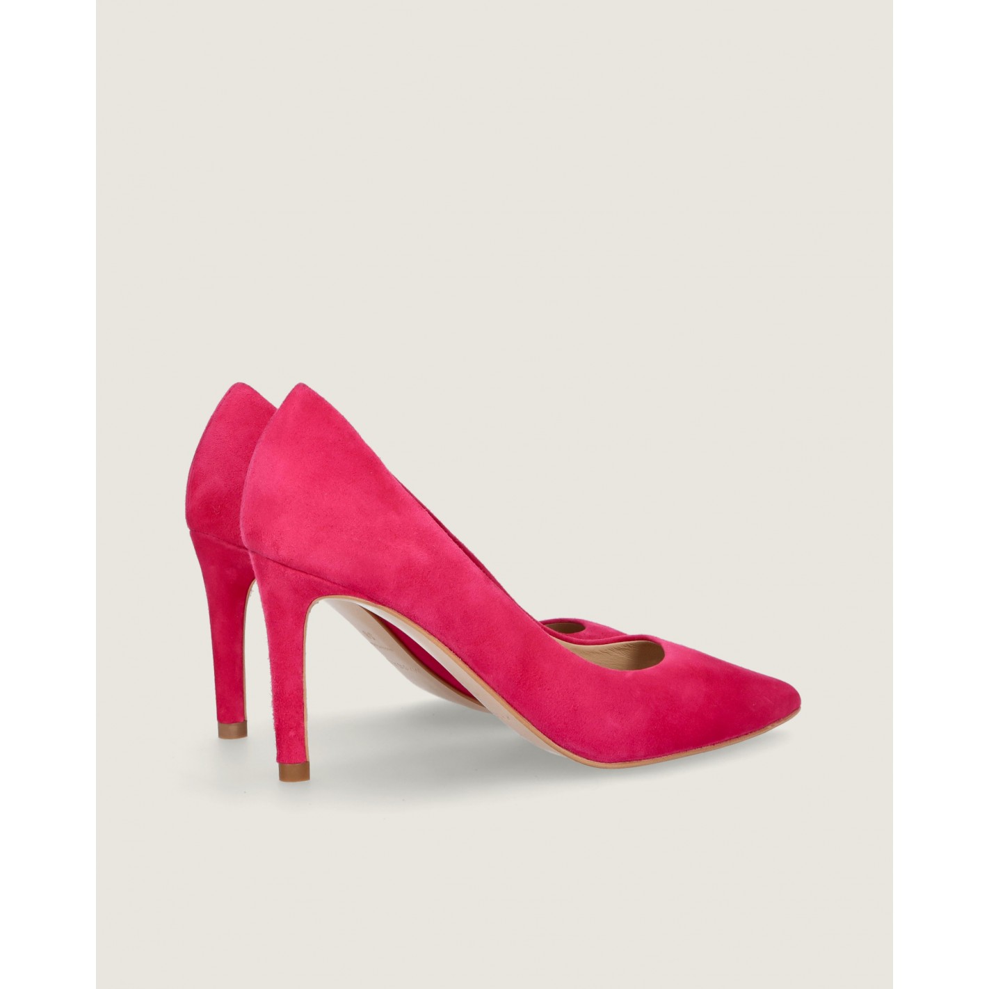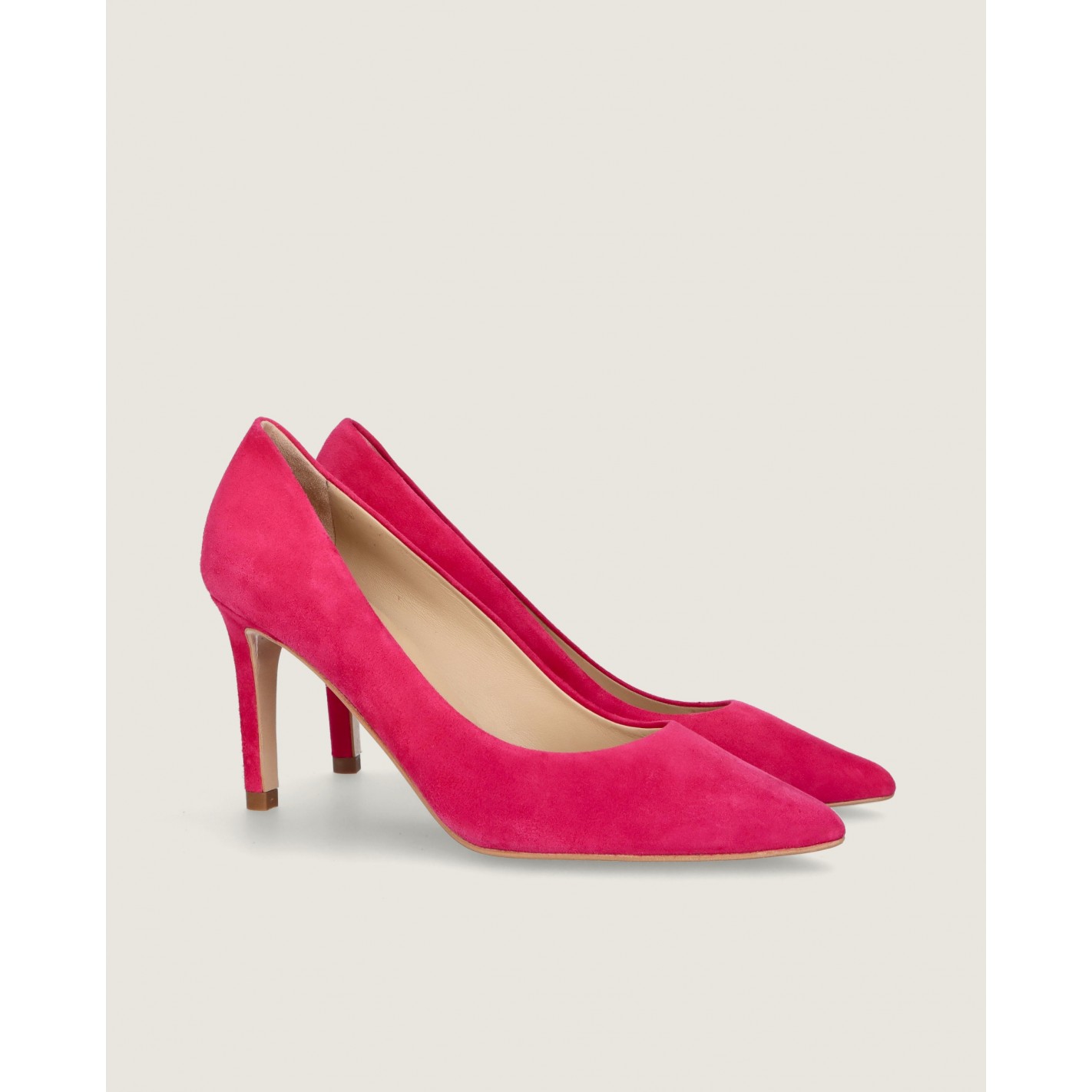 Pump Renata with a pointed toe and 8cm heel in soft fuchsia suede with rubber sole, leather insole and lining.