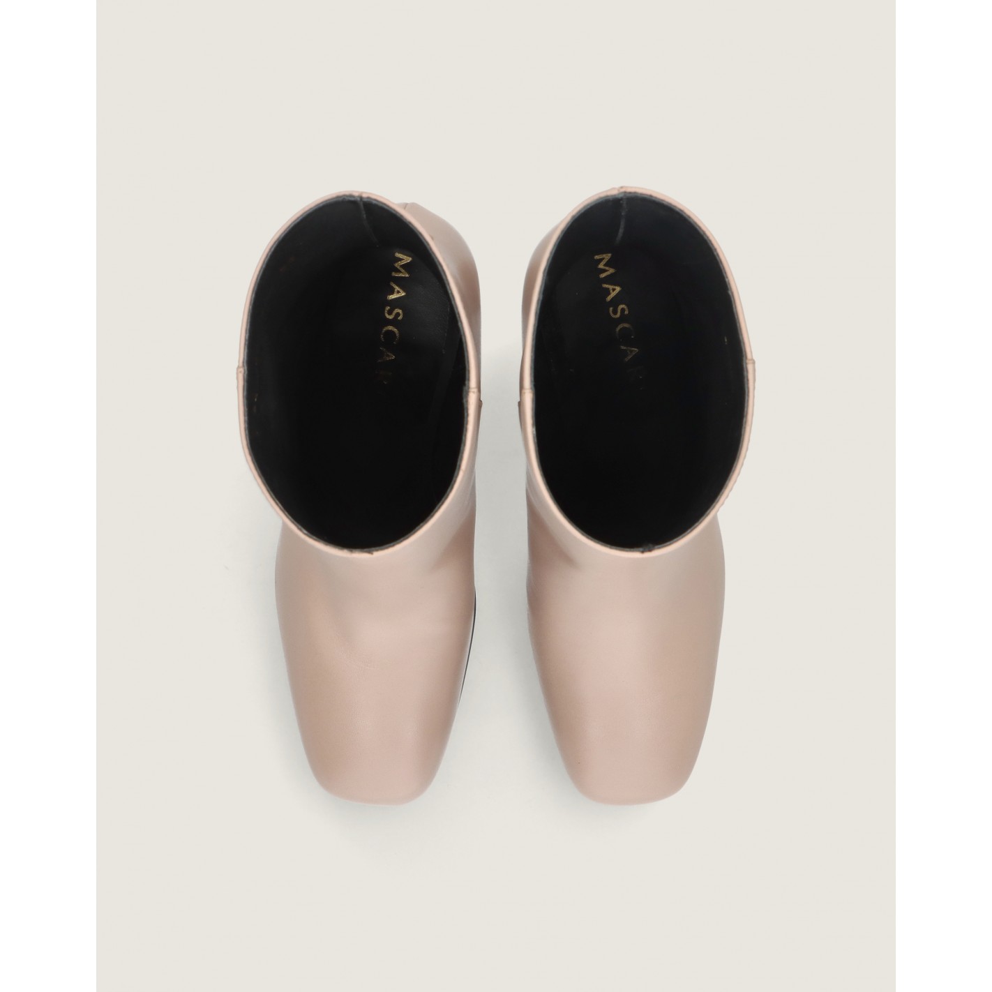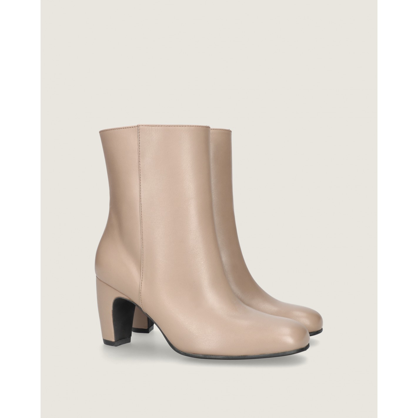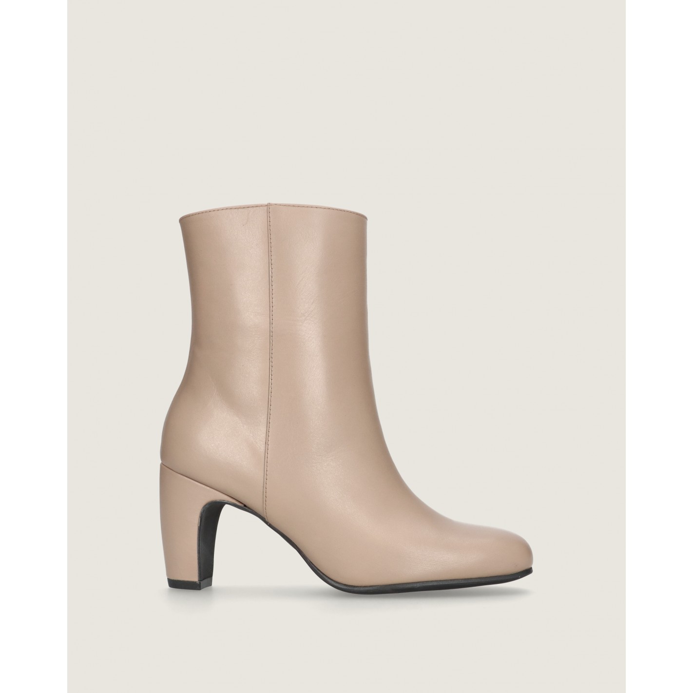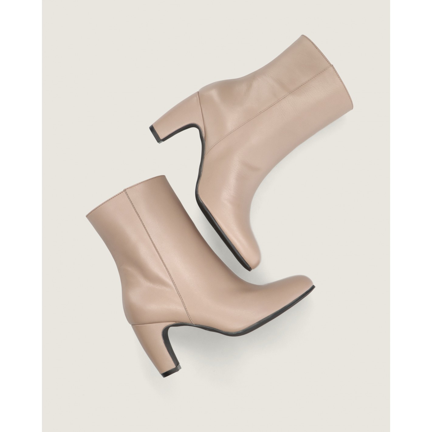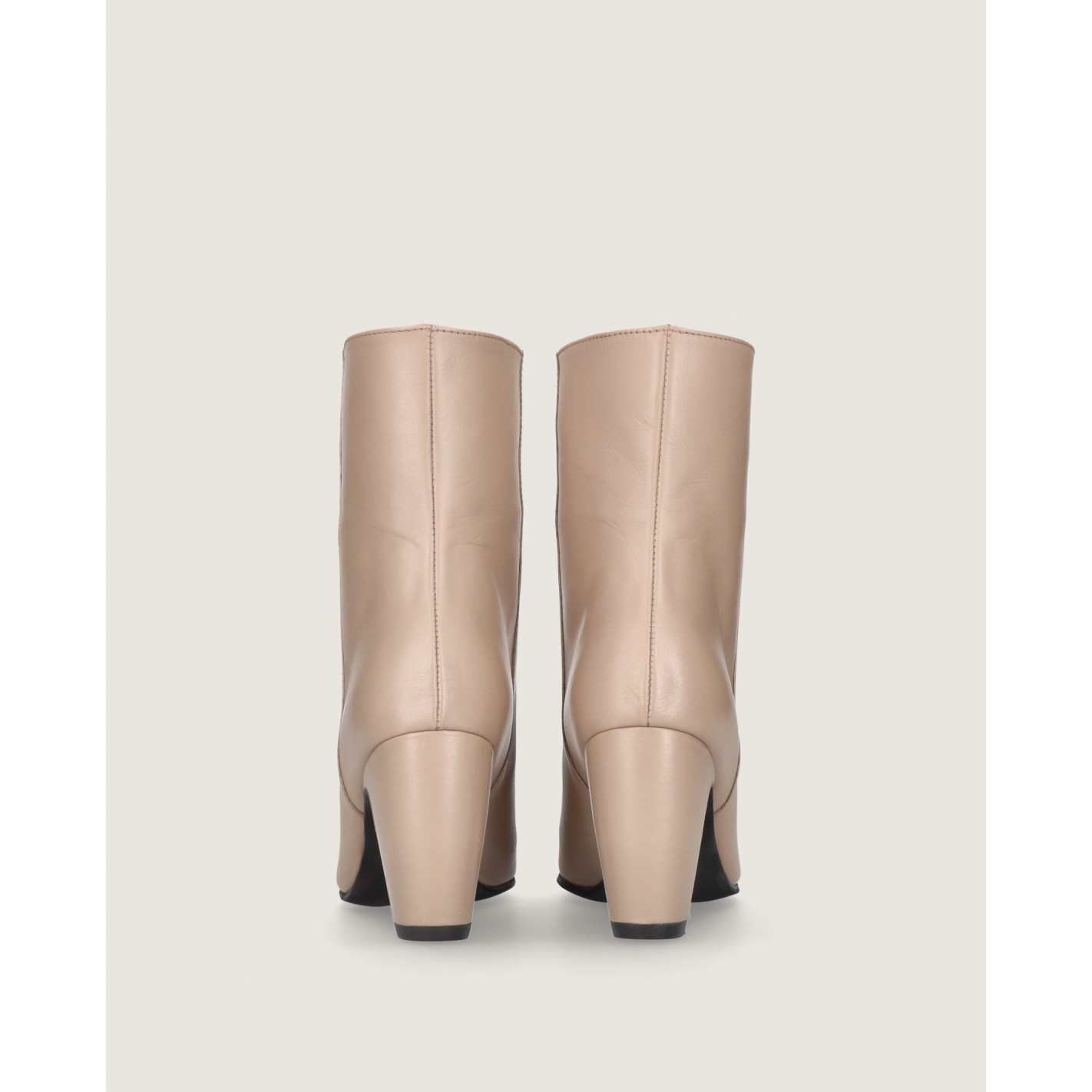 Slip on ankle boot Emily with an 8cm heel in soft beige leather with rubber sole, leather insole and lining.