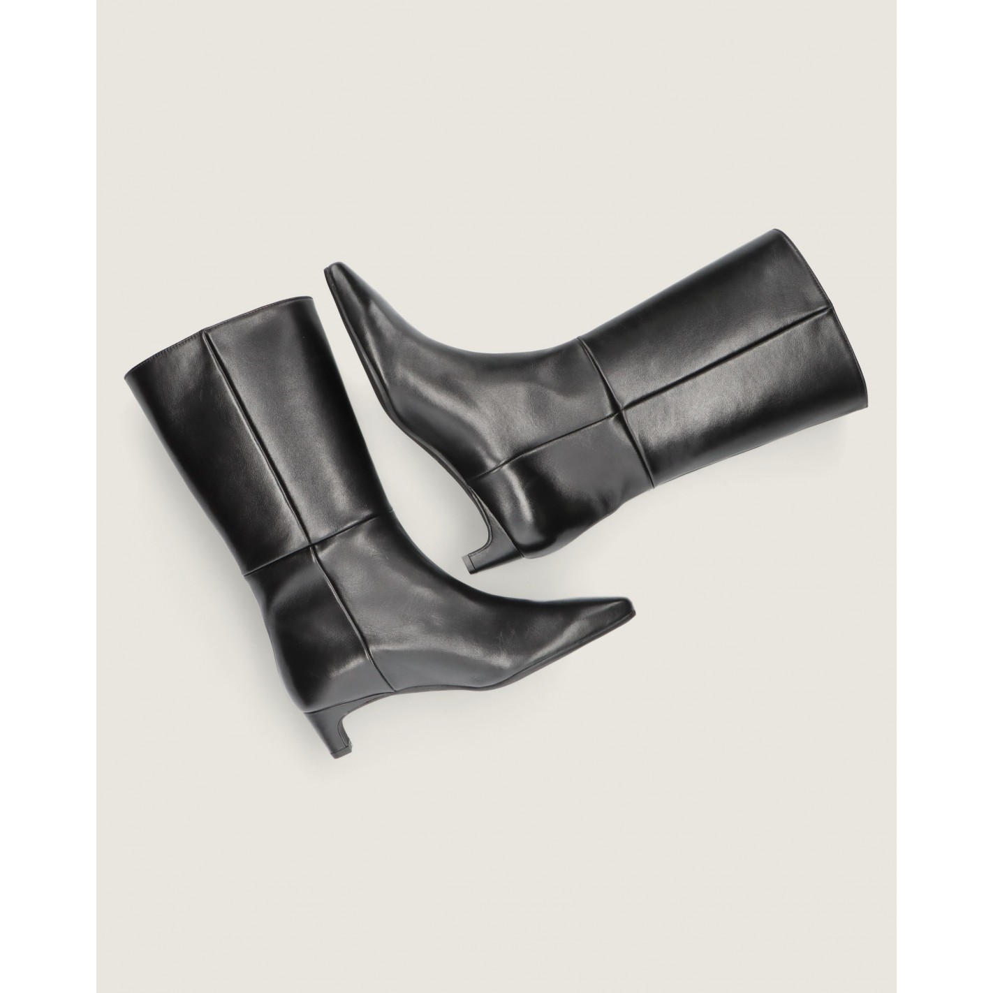Slip on boot Greta in black leather with 4cm heel, rubber sole, leather insole and lining.