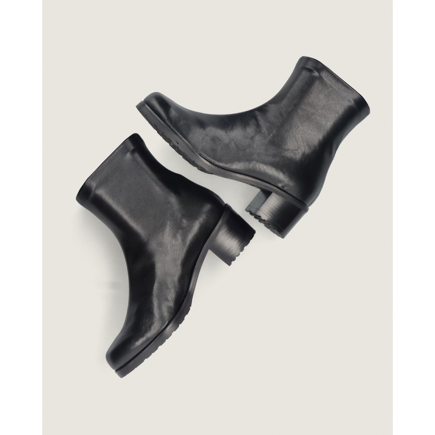 Ankle boot Claudette with a 5cm heel in black elasticated leather effect textile, rubber sole, leather insole and lining.