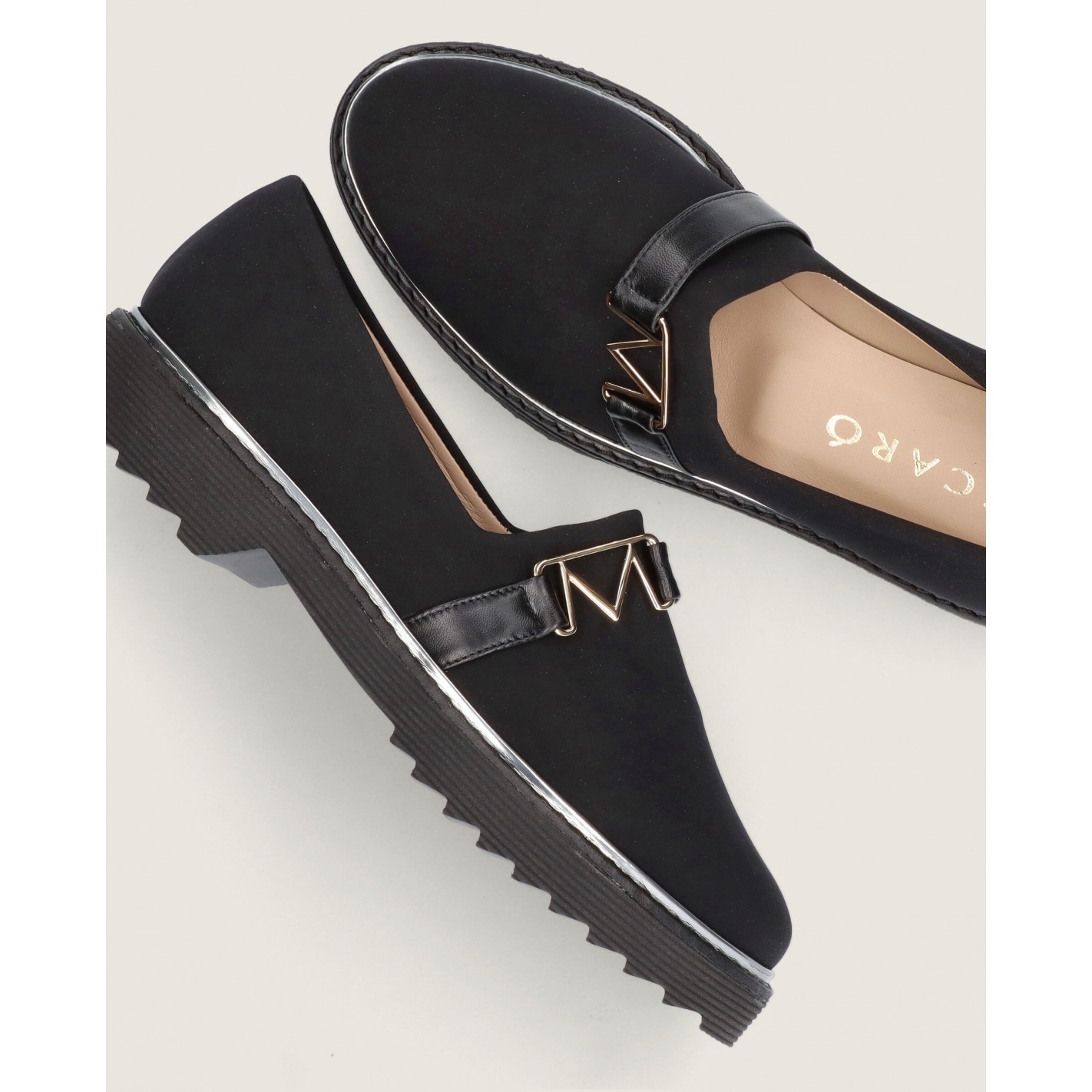 Práctica cartera en piel negra caracterizada por sus detalles dorados. Con una combinación de elegancia y estilo, la cremallera de la parte delantera da paso a un amplio compartimento para monedas, mientras que el cierre automático de la parte trasera revela ranuras para tarjetas y bolsillos para billetes. Esta pieza se ha acabado con el logotipo en...